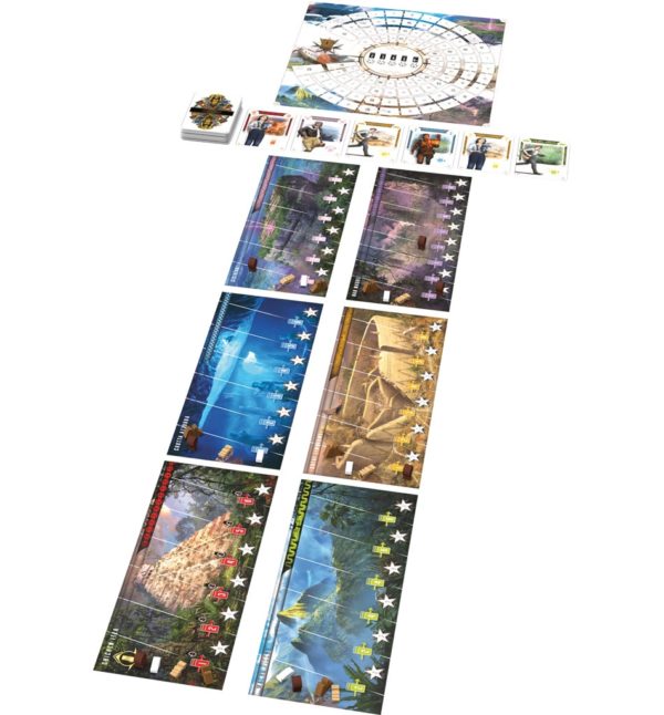 À chaque tour, recrutez un explorateur ou lancez une expédition en assemblant vos cartes par couleur ou par métier. Les petites expéditions progressent rapidement sur les plateaux des sites archéologiques. Les équipes plus importantes sont plus efficaces… mais plus longues à réunir.