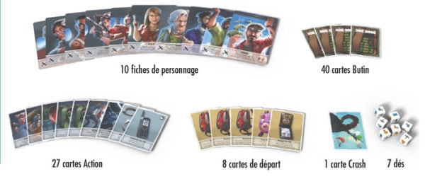Bahamas est un jeu de dés plein de rebondissements. Lancez les dés et choisissez votre action, braquez vos adversaires et récupérez un parachute… afin de survivre au crash avec le maximum de dollars.