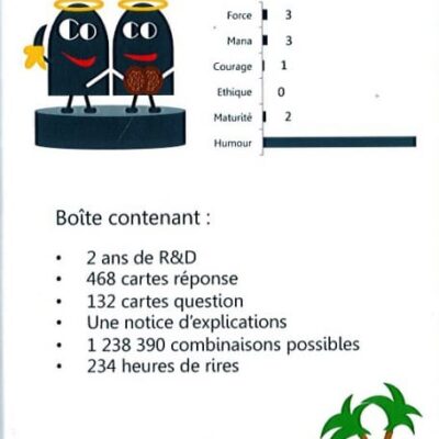Blanc-manger Coco est un jeu de cartes idéal pour l’apéro entre amis ou la fin de soirée dans le fond du canapé. Les fou-rires comme les Rooohhh non !!! sont habituels dans ce jeu ! Il est composé de 134 cartes « questions » et 466 cartes « réponses » pour une infinité (1238390) de combinaisons croustillantes.