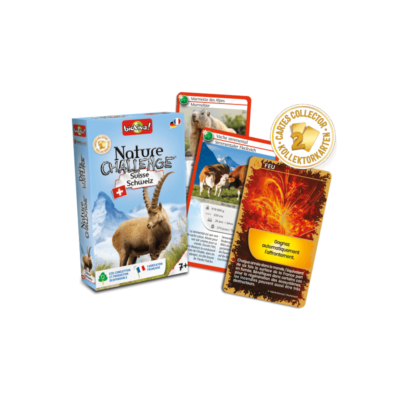 Défis Nature – Suisse vous emmène à la rencontre des animaux de tout le territoire Suisse ! Découvrez les espèces à préserver, puis pariez sur les points forts de vos animaux pour collecter toutes les cartes du jeu et remporter la partie. Alors, prêts à relever le défi ?