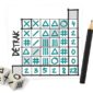 Lancez les dés et notez les symboles obtenus dans votre grille pour marquer le plus possible de points. Pour gagner, il faudra garder un œil sur toutes les lignes et toutes les colonnes, et tenter de créer des suites de 2, 3, 4 ou même 5 symboles identiques.