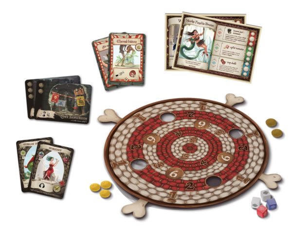Faire rebondir un dé sur une table pour lui faire atteindre une cible vous semble trop simple ? Ne vous inquiétez pas, ce n’est que le début. En plus de leurs points de vie, les monstres poseront souvent des contraintes de lancers : par-dessous la jambe, les yeux fermés, en effectuant une pichenette ou en soufflant sur le dé. Des situations et positions rocambolesques pour une enthousiasmante surdose de fun, à jouer en famille ou entre amis. Chaque héros dispose évidemment de ses propres pouvoirs dont l’utilisation judicieuse permettra parfois de sauver la mission. Chaque combat sera ensuite suivi d’une – nécessaire – période de repos, où les aventuriers pourront reprendre leur souffle, mais aussi effectuer quelques emplettes, avant de reprendre leur périlleuse progression vers le Boss Final, pour une partie d’environ 45 minutes.