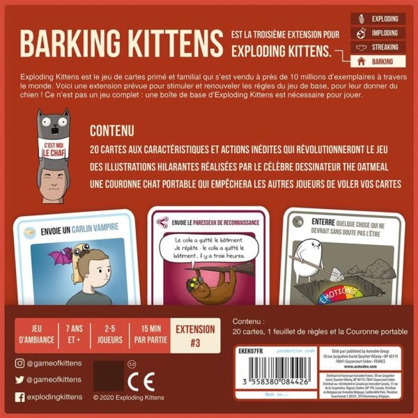 Barking Kittens est une extension pour le jeu Exploding Kittens.