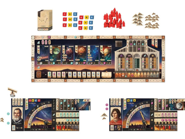 Avec son système ingénieux de sélection d’actions par déplacement de télescope, sa tension autour de l’Inquisition et ses multiples voies de scoring, Galileo Galilei est un eurogame exigeant et immersif grâce à son thème original et historique.
