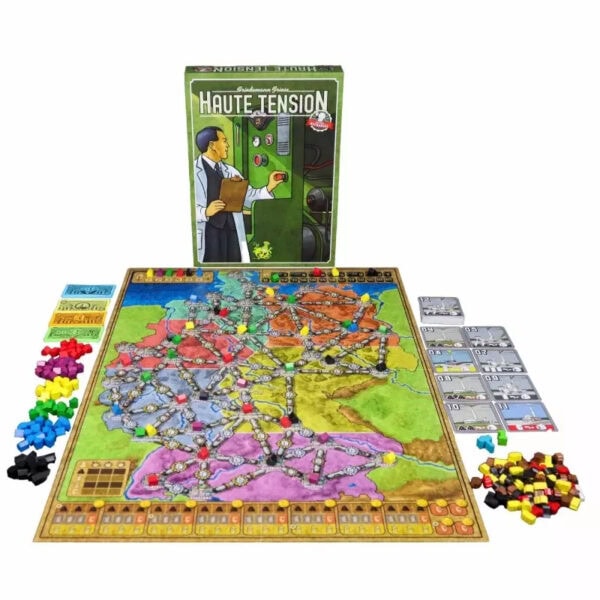 Dans Haute Tension, chaque joueur est responsable du développement d’un réseau d’alimentation électrique. Entre pétrole, charbon et nucléaire, choisissez judicieusement la source d’énergie que vous exploiterez, à moins que vous ne préfériez miser sur une énergie renouvelable et écologique.