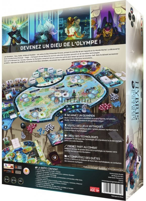 Chaque Olympien, accompagné de ses héros et prophètes, se déplacera dans différents lieux mythiques afin d’y réaliser des actions spécifiques, ou bien ira fouler les terres mortelles afin d’aider le peuple de Grèce. Au travers de ces actions, ils étendront leur influence et créeront de nouvelles technologies pour gagner des points de victoire, tout en débloquant de nouveaux pouvoirs et attributs les élevant au rang de dieu. À la fin des 6 Âges, le joueur ayant le plus de points de victoire gagnera sa place sur le trône de l’Olympe et sera le garant de ce nouveau monde. Mais attention ! Si un joueur arrive à évoluer intégralement, la partie s’achève brutalement et il prend naturellement l’ascendant sur les autres prétendants.