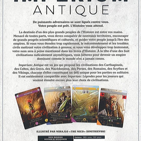 Menez votre civilisation vers la gloire dans ce jeu de deckbuilding asymétrique hors du commun. La destinée d’un des plus grands peuples de l’Histoire est entre vos mains.