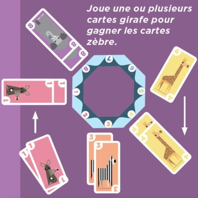Kariba est un jeu de cartes malin. Au coeur de la savane, les animaux viennent s’abreuver au bord du lac, mais la loi du plus fort domine ! Votre but sera de gagner le plus de cartes possible. À votre tour, jouez la carte Animal qui chassera les autres au risque de vous faire chasser à votre tour. Dans ce jeu, l’éléphant est roi… sauf quand la souris passe par là. La boucle de la peur animale est bouclée.
