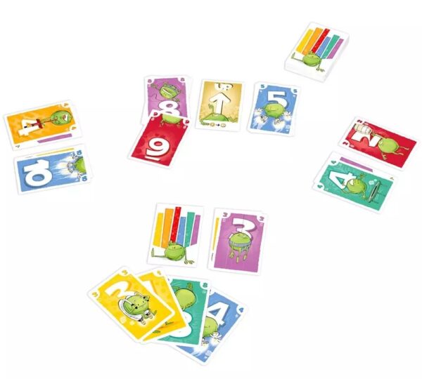 Dans le jeu Ptit Pois, vous cherchez à vous débarrasser en premier des cartes de votre main OU de votre rangée. Mais attention, si la somme des cartes qu’il vous reste dépasse celle des autres joueurs, vous vous plantez ! Le hic ! Une partie seulement des cartes de votre rangée est visible… À vous donc, de faire monter et descendre astucieusement les chiffres au centre de la table pour gagner le droit de révéler vos cartes cachées, mettre fin à la partie au bon moment et faire rager vos adversaires !