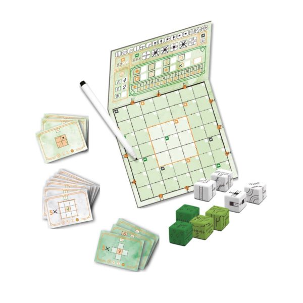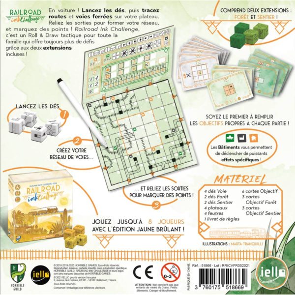 Railroad Ink Challenge : Édition Vert Luxuriant est un jeu de réflexion et de dessin pour 1 à 4 joueurs sur la mécanique du Roll & Write.