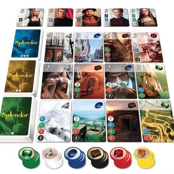 Dans le jeu Splendor, vous utilisez vos ressources pour acquérir des mines, des moyens de transport et des artisans qui vous permettront de transformer des pierres brutes en magnifiques bijoux.