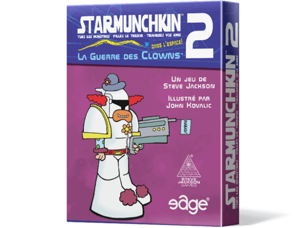 Eh oui, vous avez deviné ! Star Munchkin 2 vous fait vivre la saga épique de La Guerre des Clowns, mais avec de meilleurs acteurs ! Dans Star Munchkin, vous trouviez déjà toutes les règles farfelues, les grosbills, le pillage de donjons, bref, la folie du jeu Munchkin, mais dans l’espace. Eh bien, avec ce supplément, les choses ne font qu’empirer…