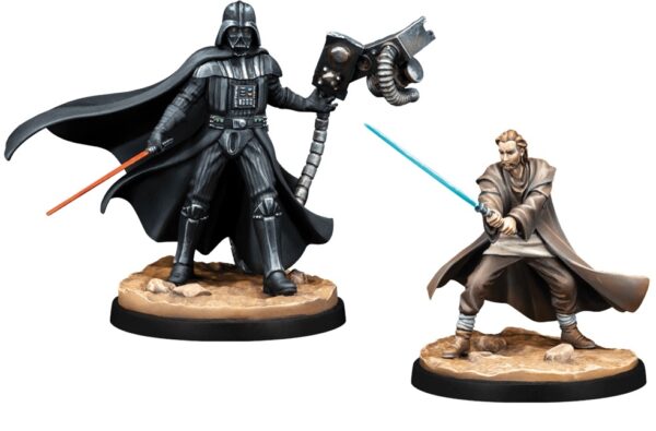 Star Wars Shatterpoint : Tu ne peux pas fuir contient deux figurines non peintes à monter, 1 décor de présentation, 2 cartes posture de combat, cartes ordre, 2 cartes statistiques.
