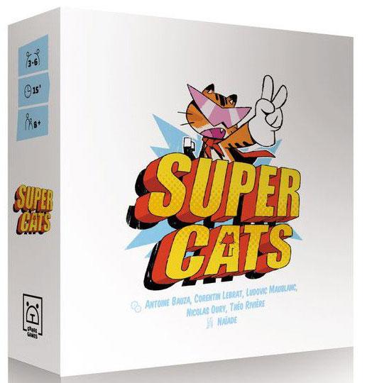 Dans Super Cats, vous incarnez un groupe de 5 chats qui s’affrontent pour devenir les Heros des Super Cats afin de vaincre le RoboDog, dévoreur de croquettes ! Le premier à transformer ses 5 chats devient le Héros et affrontera les autres joueurs qui incarneront le RoboDog. Les confrontations se déroulent en simultanée à l’aide des mains des joueurs.