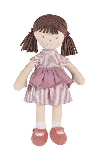 L’adorable poupée à câliner de la gamme Bonikka all Natural porte une ravissante robe bicolore en tissu uni et à motifs ornée d’une fleur tricotée. Le corps et la robe sont en 100% coton, le rembourrage en fibres de ouate de polyester recyclé. Production durable et éthique à partir de matériaux respectueux de l’environnement et durables.