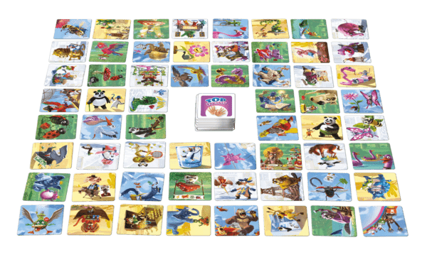 Faites devinez une image à l’aide de vos mains, du bruits, une histoire ou avec tout votre corps ! Piochez une cartes (qui est un doublon de celles mises en place sur la table), et faites la deviner en respectant la contrainte imposée par le verso de la carte sur la pile de la pioche. Les 4 contraintes possibles sont : Avec ses mains : Utiliser uniquement ses mains pour créer des scènes vivantes ou faire des formes devant soi. Avec du son : Faire des bruits ou fredonner, mais sans utiliser de mot.