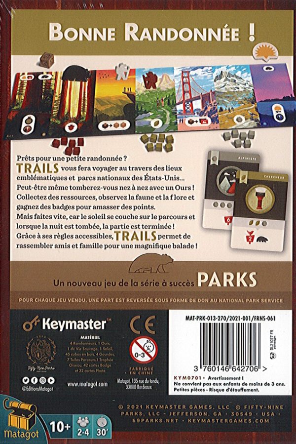 Trails est un jeu de cartes et de stratégie dérivé du jeu Parks et toujours sur le thème des grands parcs américains.