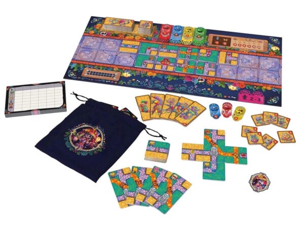 Dans le jeu Viva Catrina, vous incarnez les maîtres de cérémonie du Día de los Muertos et devez organiser une fête somptueuse en l’honneur des défunts. Dans ce jeu de société coloré et stratégique, chaque joueur bâtit son village à l’aide de tuiles Chemin, dans le but d’attirer chimères, visiteurs, papillons et de libérer des envolées de ballons. Chaque décision de placement compte pour optimiser vos connexions et marquer un maximum de points tout en célébrant dignement la Catrina.