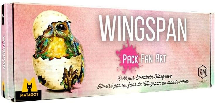 Plus de 300 fans de Wingspan ont envoyé les illustrations de leur oiseaux favoris du jeu pour le Wingspan Fan Art Challenge. L’éditeur en à sélectionné 255 de styles divers et variés. Vous trouverez ainsi dans ce Wingspan Pack Fan Art un grand nombre de cartes oiseaux (mécaniquement identiques à leurs versions du jeu de base Wingspan et de ses extensions). pour ajouter une nouvelle saveur à votre table de jeux.
